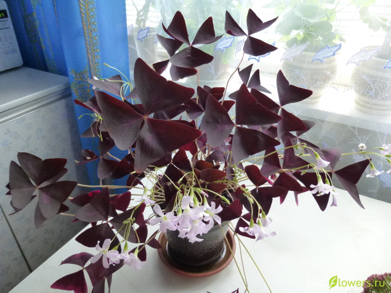 Это связано с тремя лепестками пурпурного трилистника и внешностью, похожей на клевер. На самом деле, это представитель семейства щавелевых и уроженец Бразилии.