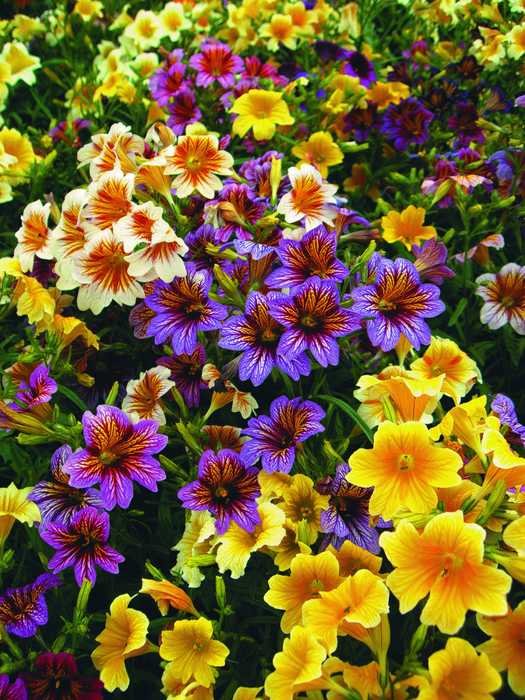 Калибрахоа, также называемые «Миллион колоколов», выглядят как маленькие петунии.Зимостойки в зонах 9-11, обычно выращиваются как однолетники в подвесных корзинах и контейнерах, а на небольших площадях используются как почвопокровные. Дайте им влажную, хорошо дренированную почву, богатую органическими веществами. Они любят полное солнце, но могут продержаться дольше, если в регионах с жарким летом дать светлый оттенок. Подкармливайте их сбалансированными водорастворимыми удобрениями, как указано на вашем продукте, и регулярно поливайте. При повышении температуры контейнерам может потребоваться дополнительная вода. Хотя нет необходимости удалять увядшие цветы, прищипывайте растения, чтобы они оставались густыми.Покажите здесь: Superbells Yellow.