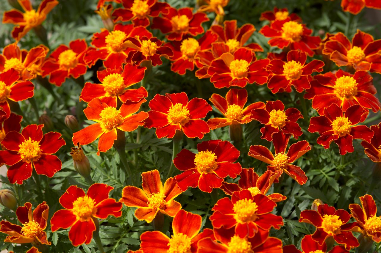 Бархатцы — простые, надежные однолетние растения, которым требуется солнце и хорошо дренированная почва.Доступны многие типы, размером от нескольких дюймов до нескольких футов в высоту. Бархатцы бывают белого, желтого, красного, оранжевого и сочетания этих цветов. Многие считают, что бархатцы помогают отпугивать насекомых-вредителей, поэтому их часто сажают на огородах и вокруг них.