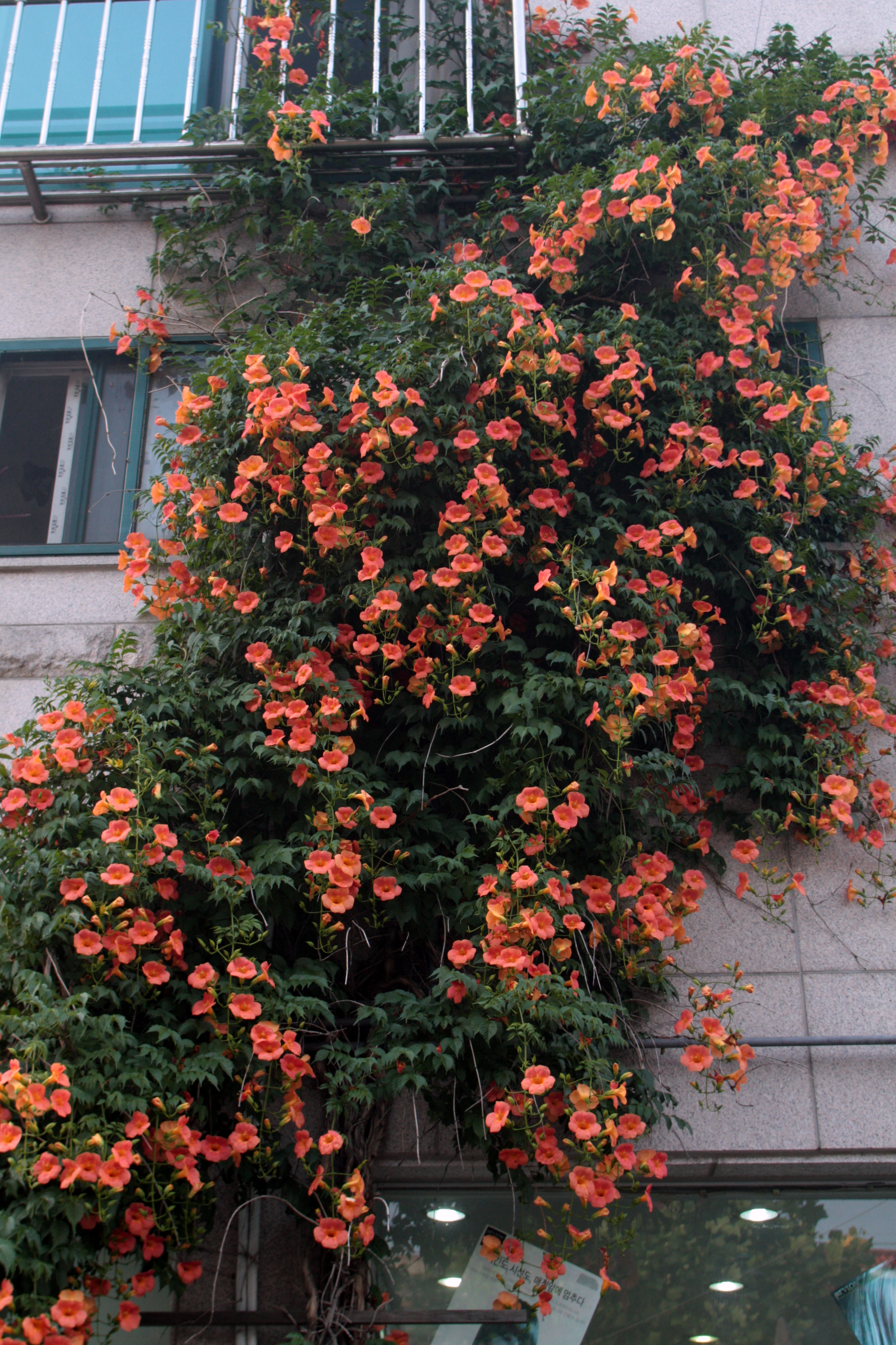 Цветки кампсиса укореняющегося вытянуты трубочкой, и каждый из них может иметь разные оттенки (от оранжевого до красного и желтого). Это растение хорошо смотрится на арках, перголах, заборах и шпалерах. Кампсис укореняющийся – одно из лучших вьющихся растений, которое способно вырасти до 12 м в высоту. Растение нормально чувствует себя в тени, но для пышного цветения все же стоит высаживать его на солнечные участки.