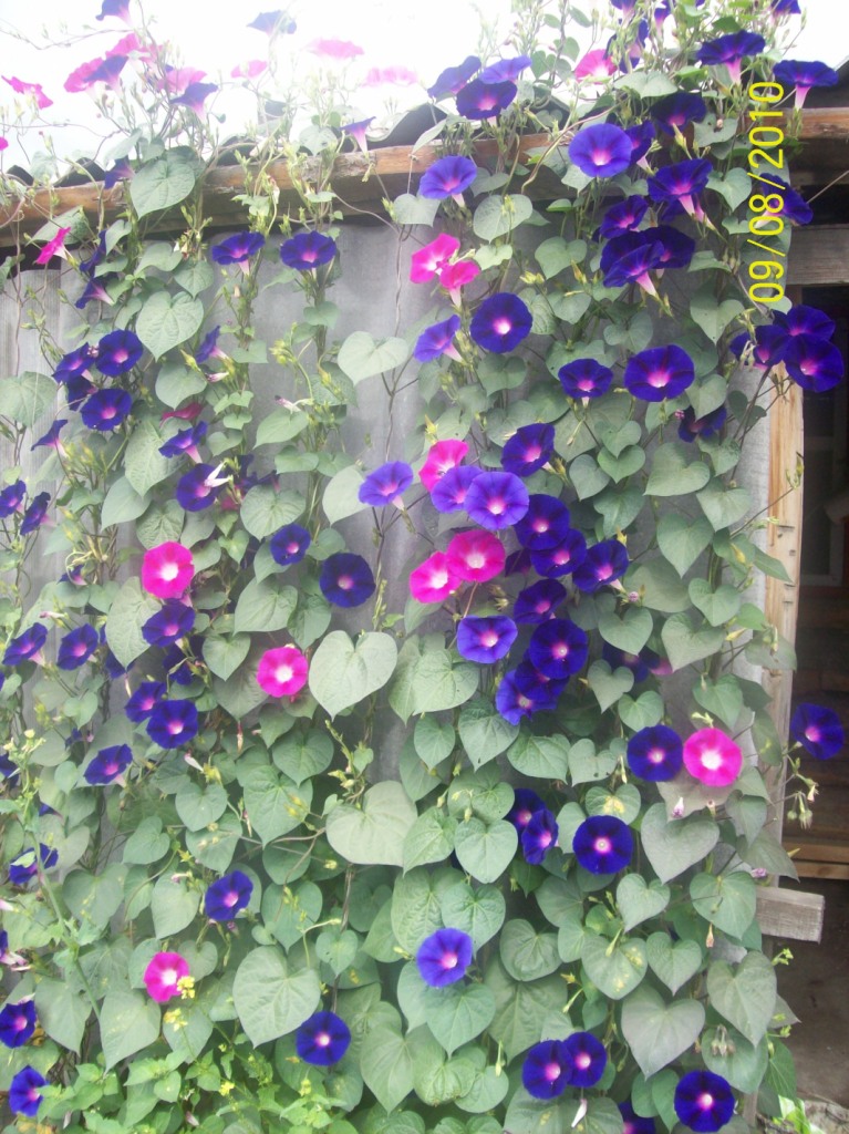 Ипомея – наиболее распространенный вьющийся однолетник, имеющий широкую линейку цветов. Сердцевидные крупные листья, яркие граммофоны цветов, открывающиеся каждое утро и цветущие до полудня – это красавица ипомея. Размножается посевом семян непосредственно в грунт, на постоянное место.