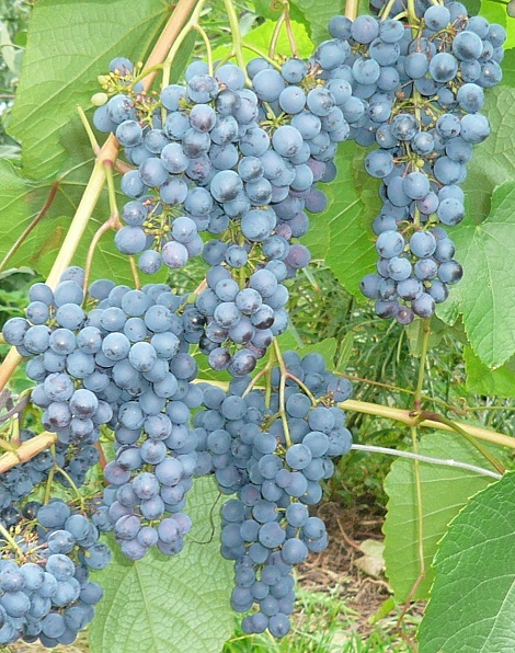 Грозди средней величины созревают в начале сентября. Ягоды мелкие, слегка вытянутые. Тонкая кожица темно-синего цвета.У них тонкий аромат, а вкус не очень выразительный.