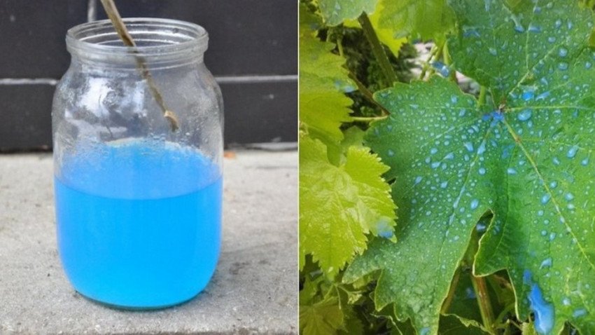 Для осенней обработки готовят 1% смесь, растворяя в 9 л воды 100 г медного купороса. В отдельной емкости смешивают 100 — 150 г гашеной извести с 1 л воды. Далее разведенный купорос медленно доливают в емкость с известью и перемешивают. Раствор заливают распылитель и обильно опрыскивают кусты винограда сверху вниз. Процедуру проводят в сухую безветренную погоду. Токсичность требует применения защитной одежды и четкого соблюдения технологий работ.