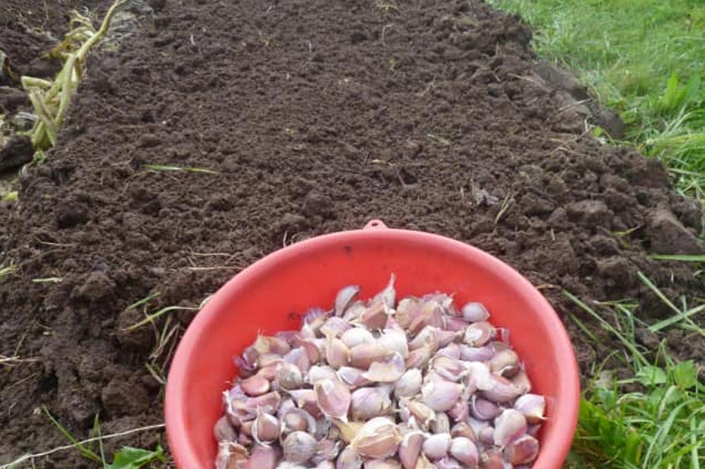 Затем грядка должна постоять некоторое время. Чеснок высаживают головками, соблюдая оптимальное расстояние между ними.