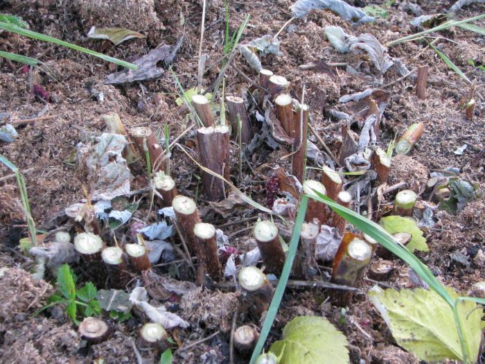 Весной верхушки у побегов прищипните, либо укоротите, если они подмерзли, на 10 см. И таким образом, вы получите сначала хороший урожай на этих, прошлогодних побегах. Затем, когда они засохнут (июнь-июль), то вырежьте их у земли. И второй урожай соберете на новых однолетних побегах текущего года.
