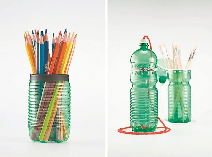 Можно подумать и о практичном применении мусора, сделав органайзер для канцелярии или других предметов. Инструменты для творчества потребуются те же самые.