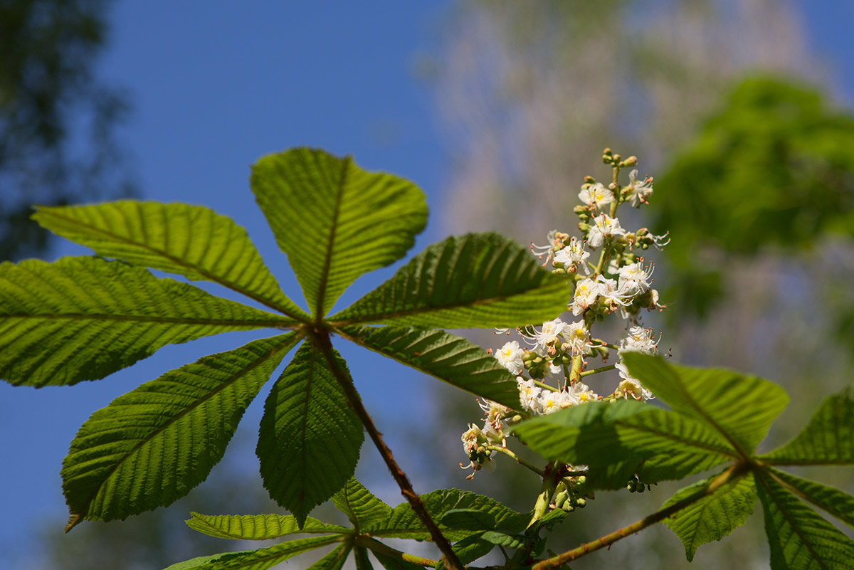 - Конский каштан мелкоцветный (Aesculus parviflora) – растет в юго-восточных штатах США и образует кустарник до 5 м высотой. Лист состоит из 5-7 листочков, снизу войлочно-сероватых. Цветы белые с розоватыми тычинками.