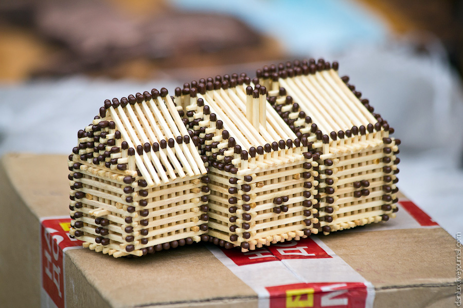 Талантливый человек талантлив во всем. В руках мастера работа кипит, работа горит, в ход идет все, что попадется под руку. Казалось бы, что можно сделать из такого банального материала, как спички – только костер разжечь. Из обычных бытовых спичек домашние мастера создают дома и не только. В творческом процессе рождаются целые города с одно- и многоэтажными домами, мельницами, колодцами и царскими дворцами, а рядом с этими городами моря с военным и торговым флотом. Спички – очень универсальный инструмент, из которого можно соорудить большое количество разнообразных построек. И этот факт не удивляет, так нужны всего два элемента, чтобы построить спичечный домик: инструкция по изготовлению и непосредственно спички.