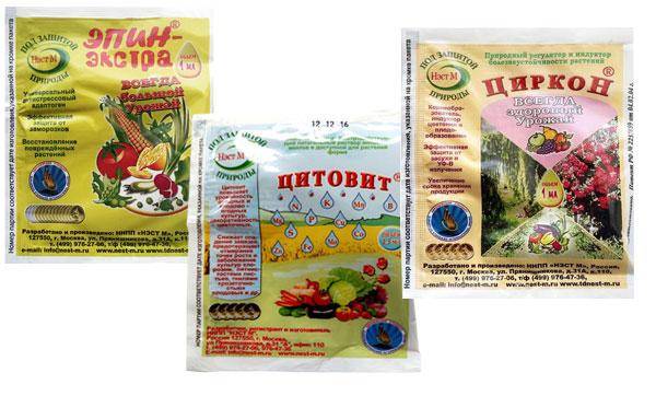 «Циркон». Повышает всхожесть семян, ускоряет их прорастание, а также развитие, рост и цветение растений, значительно снижает вероятность поражения серой гнилью, мучнистой росой и вирусными заболеваниями. Кроме того, у «Циркона» очень высока корнеобразующая активность, почти на уровне с препаратами корнеобразования, поэтому его нельзя применять одновременно с подобными препаратами.