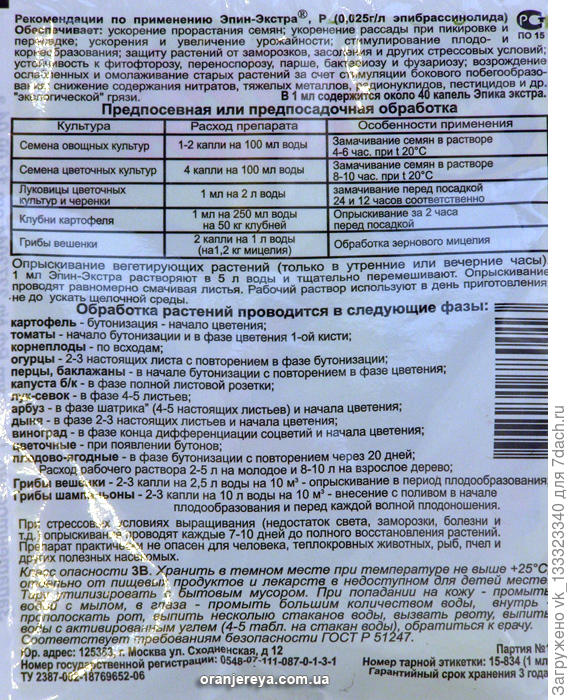 Обработку «Эпином» следует производить за сутки до намеченной работы. Действие на растение продолжается примерно 14-18 суток.