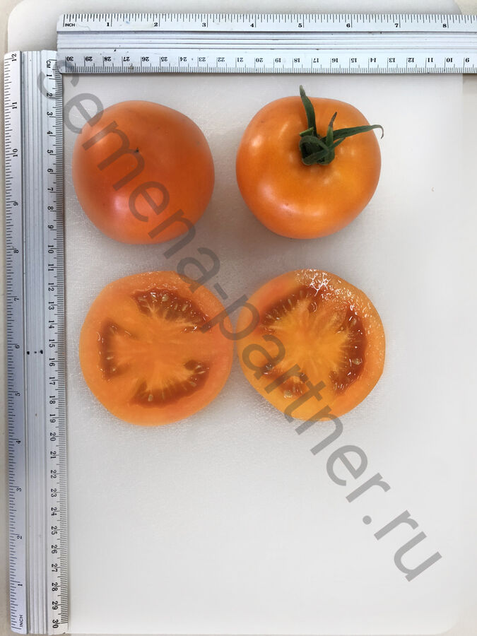 Плоды средней величины (до 140 г), устойчивы к растрескиванию, хорошо сохраняются, подходят для консервирования и салатов. Гибрид устойчив к ряду основных заболеваний томата и к нематоде (!).