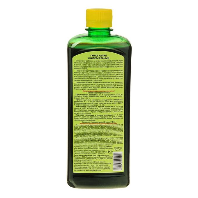 Многие садоводы привычно пользуются только жидким гуматом калия. Этот препарат также часто применяют в отношении любых культур в промышленном растениеводстве. Состав разливается по полиэтиленовым бутылкам, объем которых составляет 5 или 10 л. Чаще встречается тара зеленого или коричневого окраса с аналогичными герметичными крышками, в которых предусмотрен клапан сброса лишнего давления.