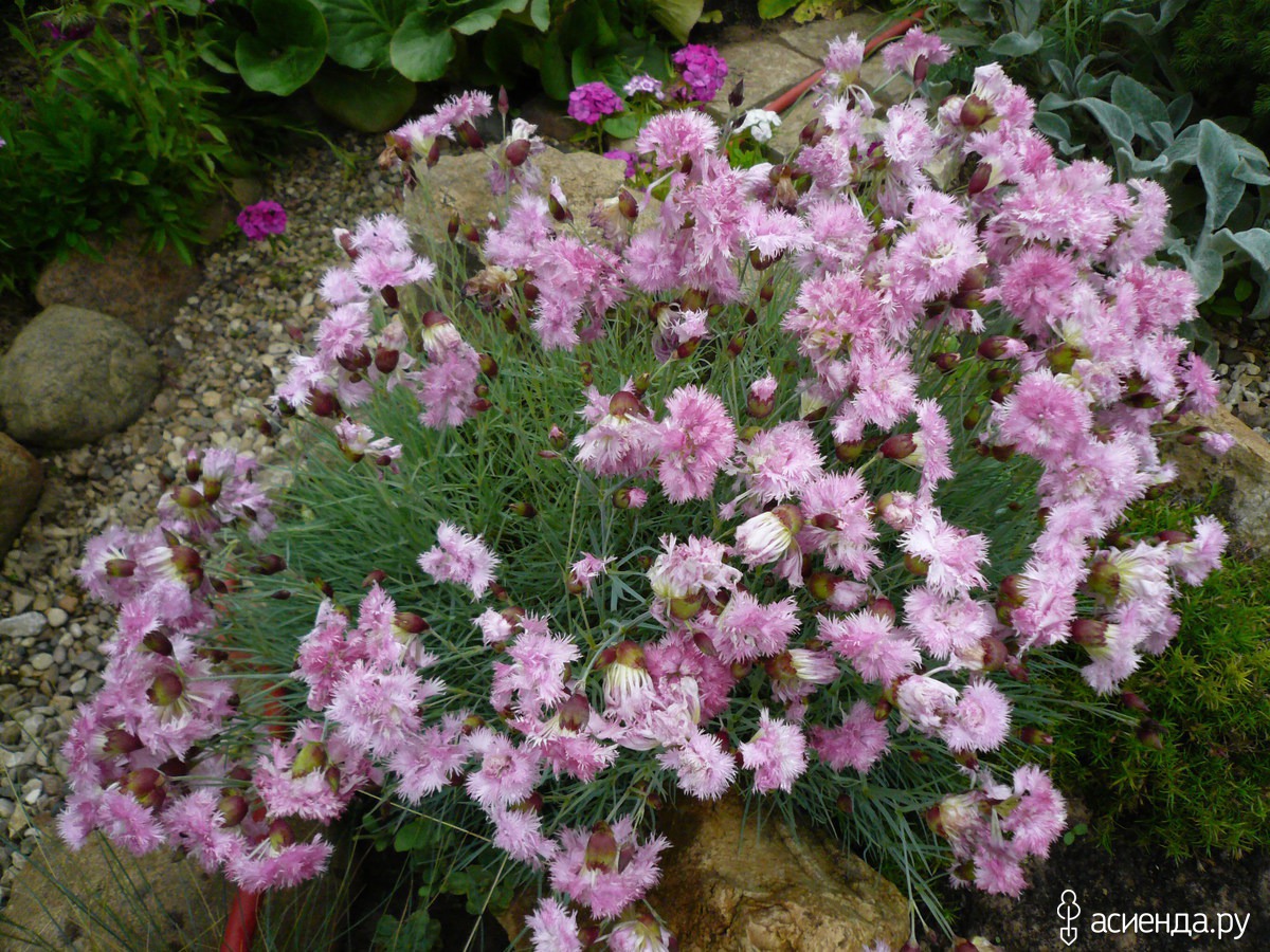 Самая низкая гвоздика станет хорошим украшением. садовый участок, клумбы или бордюр. Своевременный полив и подкормка — залог обильного цветения.