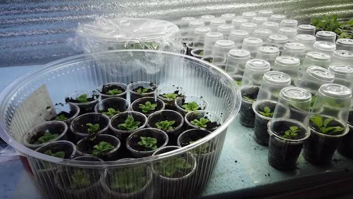 После посадки почву надо немного утрамбовать и обильно полить. Для создания тепличных условий на емкости надевают полиэтиленовые пакеты или накрывают пластиковыми бутылками. Чтобы проветрить растение, рекомендуется на 20 минут ежедневно снимать укрытие. В противном случае возрастает вероятность поражения грибковыми инфекциями. В таких условиях необходимо держать растение ориентировочно 2 недели.