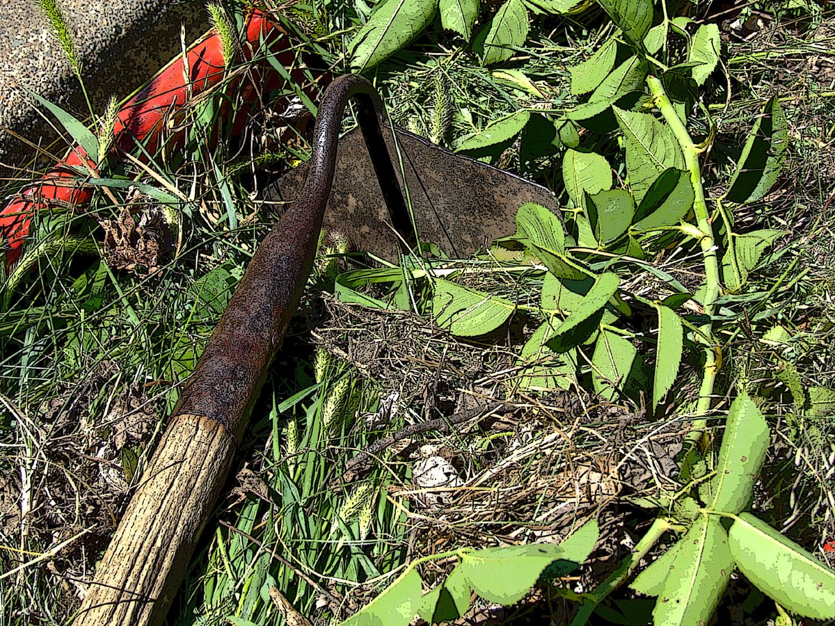 Например, сныть не любит, когда ее подрубают ниже точки роста, поэтому ее нужно регулярно по мере отрастания срезать тяпкой или плоскорезом на глубину 1,5-2см.