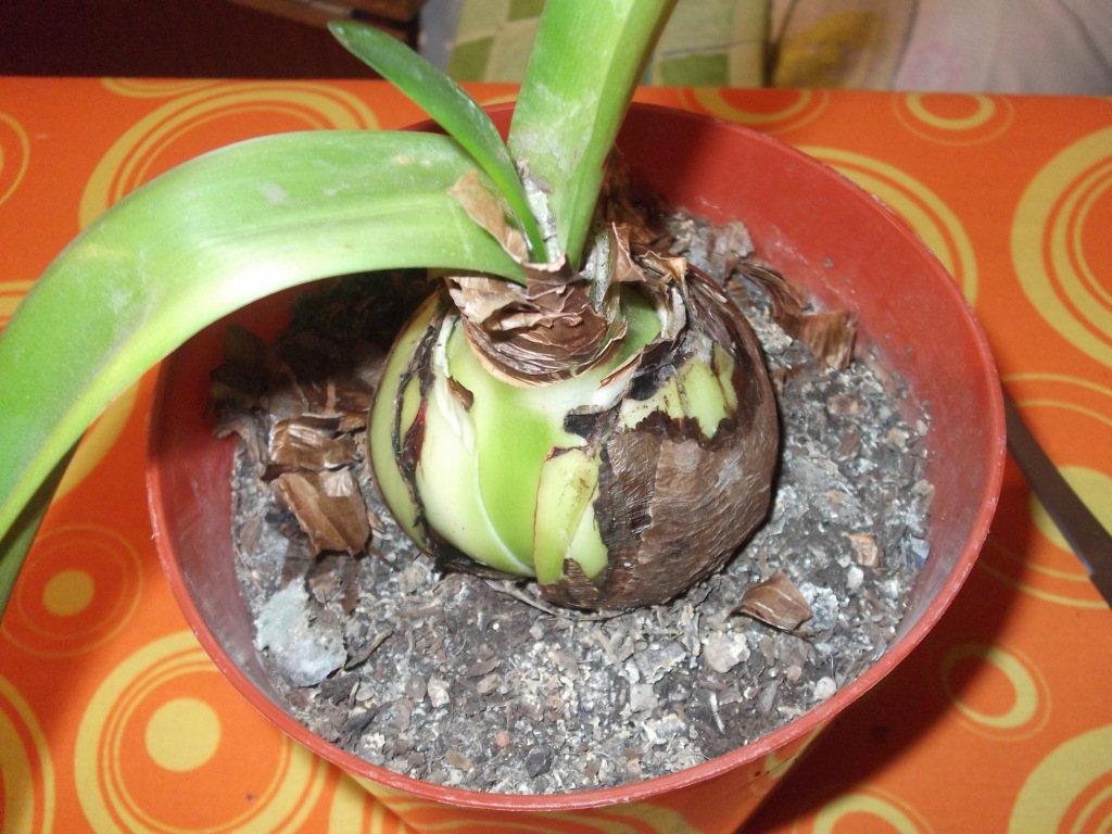 - очистить гиппеаструм от верхнего слоя шелухи, добраться до основного тела луковицы;