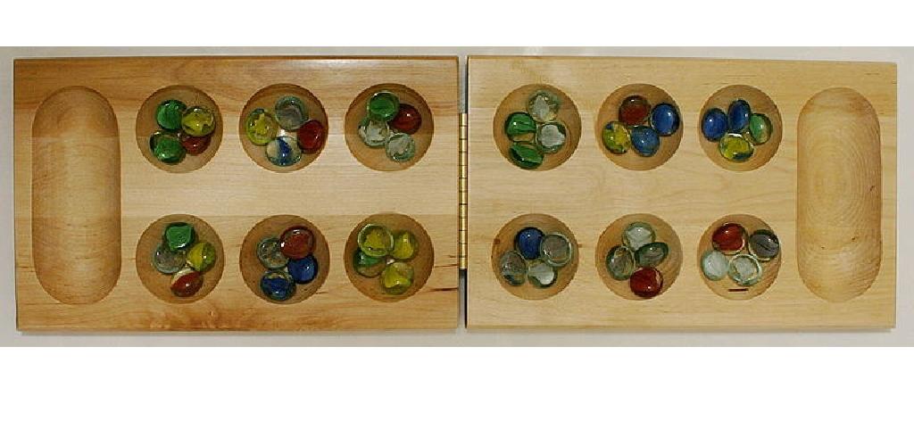 Сама игра имеет множество вариантов, и в нее можно играть практически с любым количество камней и / или ям. Самая распространенная форма играется на прямоугольная керамическая или деревянная доска с двумя неглубокими «магазинами», один на каждый конец, и дюжина меньших «ямок», расположенных в два ряда по шесть штук каждый.Либо три, либо четыре, либо пять (в зависимости от варианта), камни кладут в каждую яму, оставляя два магазина пустыми.