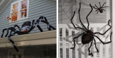 Пауков на Хэллоуин можно приобрести и готовых, особенно, если нужно много фигурок. Очень красиво смотрится вереница пауков бегущих по стене или двери.