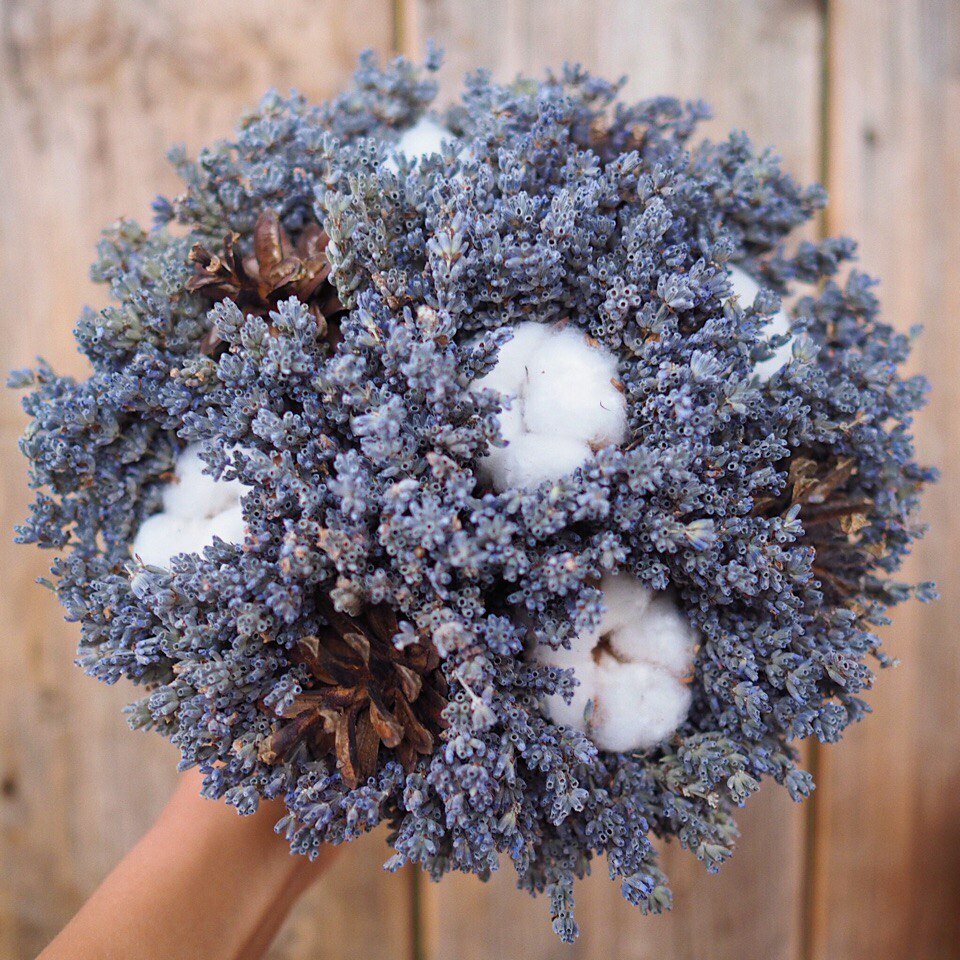 Хлопок идеально подойдет для зимнего букета невесты. Его воздушные коробочки добавят образу нежности, а шишки напомнят о времени года. При выборе хлопка важно не ошибиться со степенью готовности коробочек, ведь незрелый хлопок – это коричневые комочки, которые никогда не станут пушистыми белыми облачками. Выбирайте полностью раскрытые коробочки, которые похожи на комки белоснежной спутанной ваты, и этот букет будет многие годы стоять в вашей спальне, напоминая о дне бракосочетания.