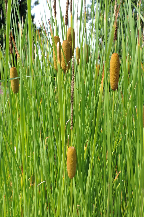 Уже упомянутые симпатичные «початки-эскимо» — это рогоз. К этому роду относятся 32 вида, произрастающие в самых разных уголках нашей планеты: от тропиков до северных болот. Россиянам лучше всего знаком рогоз широколистный. Стебли у него очень прочные, а листья довольно жёсткие. Под порывами ветра рогоз, конечно, шелестит, но особого шума не производит.