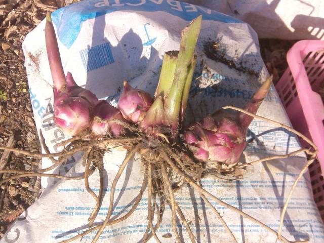 Следующим шагом является освобождение корневищ от почвы.Я в основном использую руки. Идите медленно и осторожно. Вы можете обрезать длинные мясистые корни, но будьте осторожны, чтобы не повредить корневища.