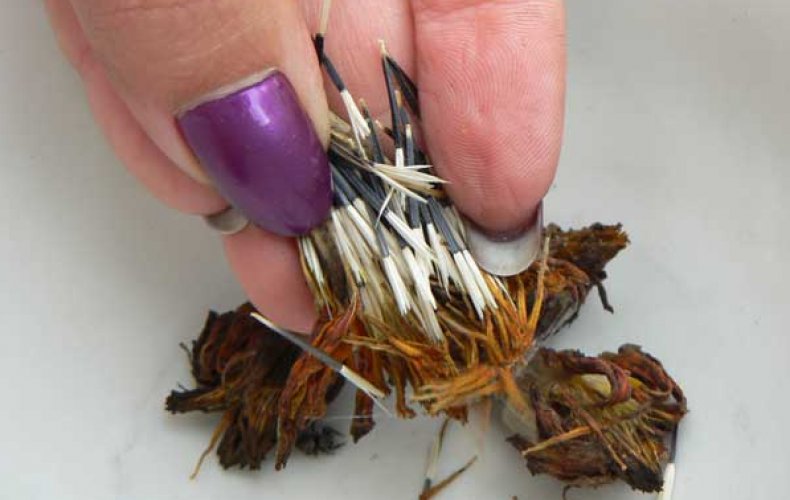 Заготавливать высохшие семенные корзинки можно в течение всего лета. Лучшее время сбора – солнечные дни начала осени. К этому времени года семена хорошо вызревают и легко отделяются от цветоложа.