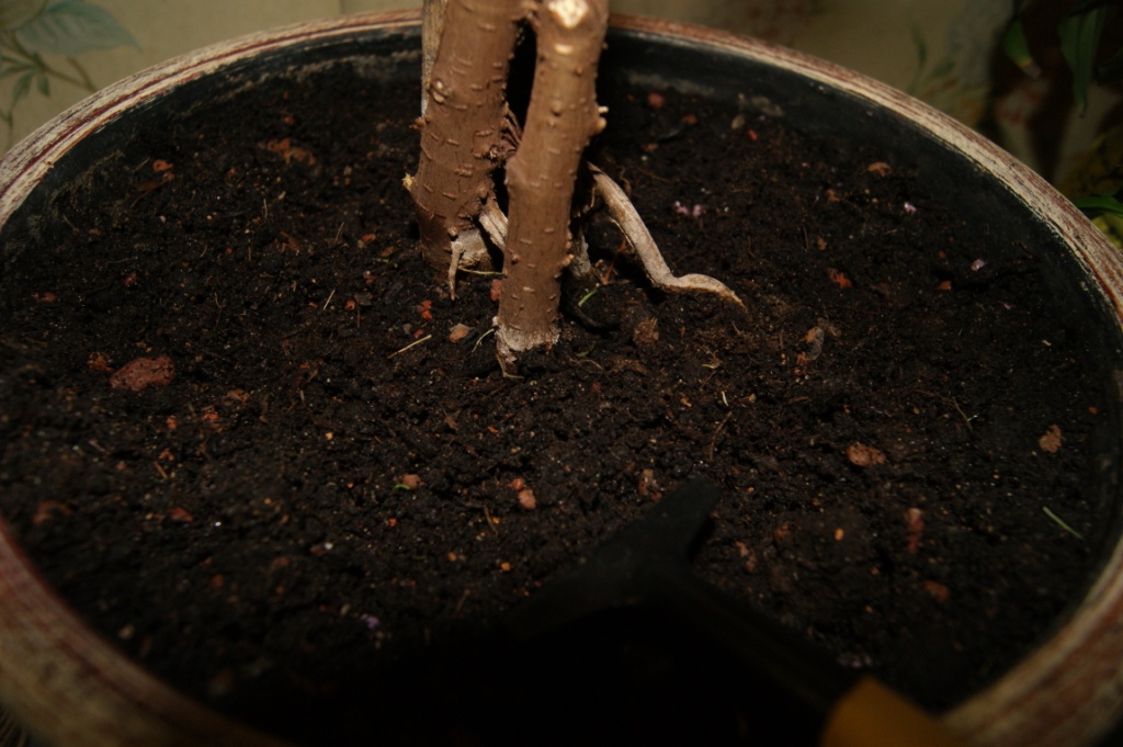 Еще одним вариантом может быть частичная замена грунта. Применяется для высокорослых фикусов, высота которых более 1,5-2 м. Процедура заключается в том, чтобы провести замену верхнего слоя земли в горшке.