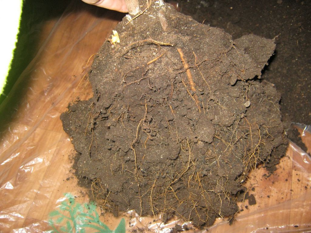 Засохшие корешки нужно обрезать ножницами. Места срезов припудривают древесным углем.