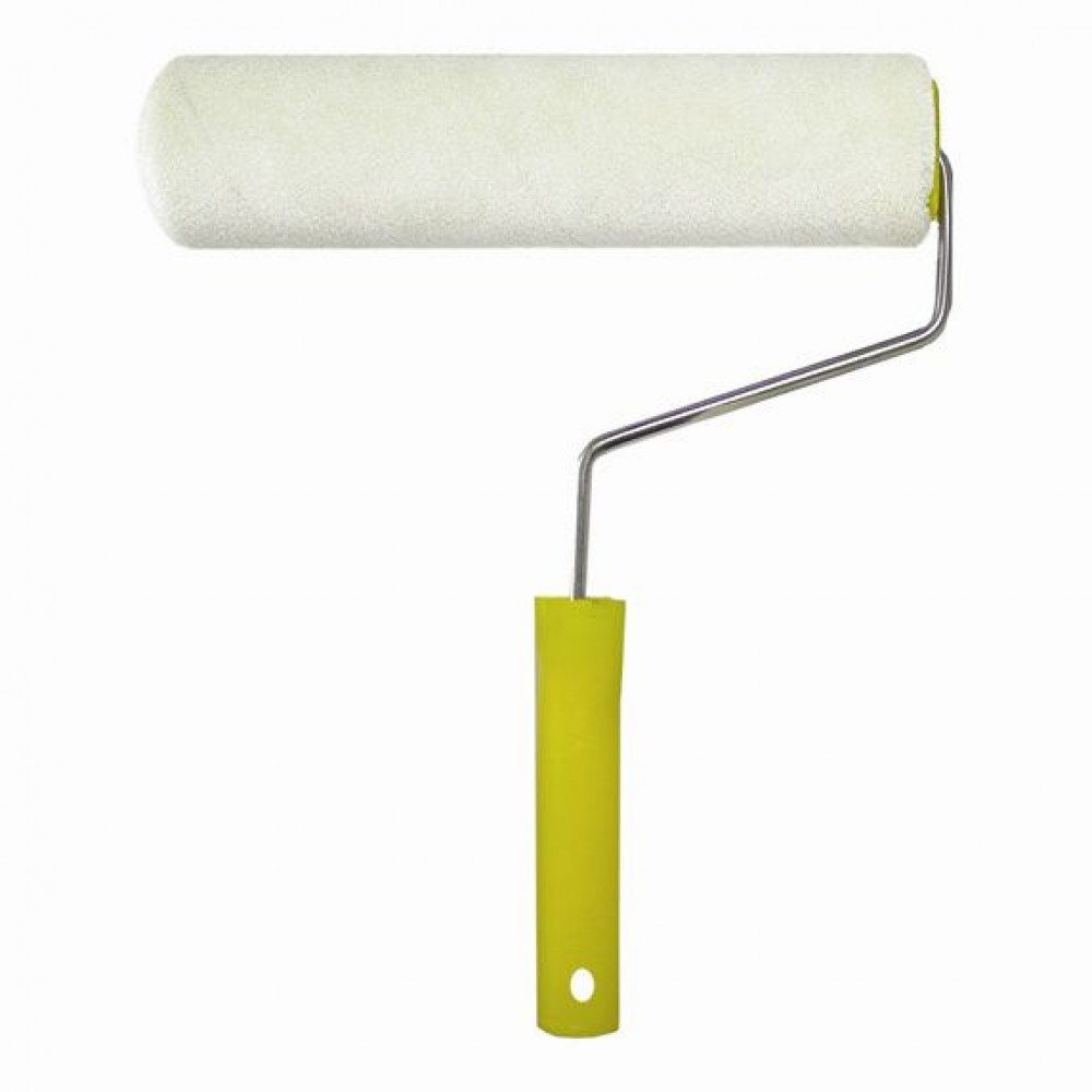 Именно этим валиком требуется наносить клей как на поверхность стены, так и на сами обои. Особенность инструмента в том, что он имеет ворсистую шубку. Благодаря этому клейстер равномерно распределяется стене или шпалерам. Шубка сделана из овчины, или шелка с синтетическими материалами. Надевается на бобину. Рукоять на металлическом каркасе сделана из пластика. Долговечный инструмент, который имеет доступную стоимость. Шубки можно менять. Оптимальный размер для работы с обоями: 25 см.
