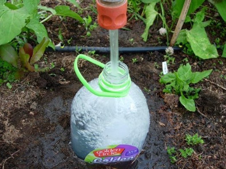 Огородники — люди изобретательные. Чтобы не тратить деньги, они придумали несколько вариантов изготовления капельного полива из пластиковых бутылок. Ёмкости будут нужны не маленькие — от 1 до 5 л (зависит от того, какой объём земли надо увлажнять).