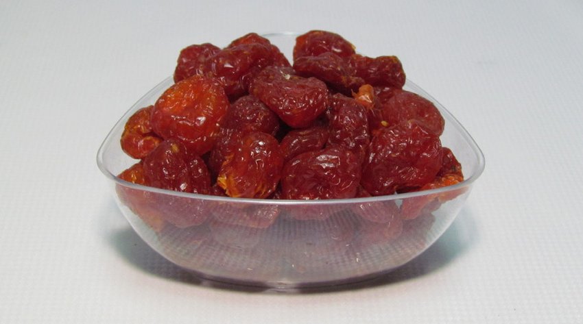 - Приторно-сладкий вкус. Сушёные черри сладковатые, а после них чувствуется томатное послевкусие.