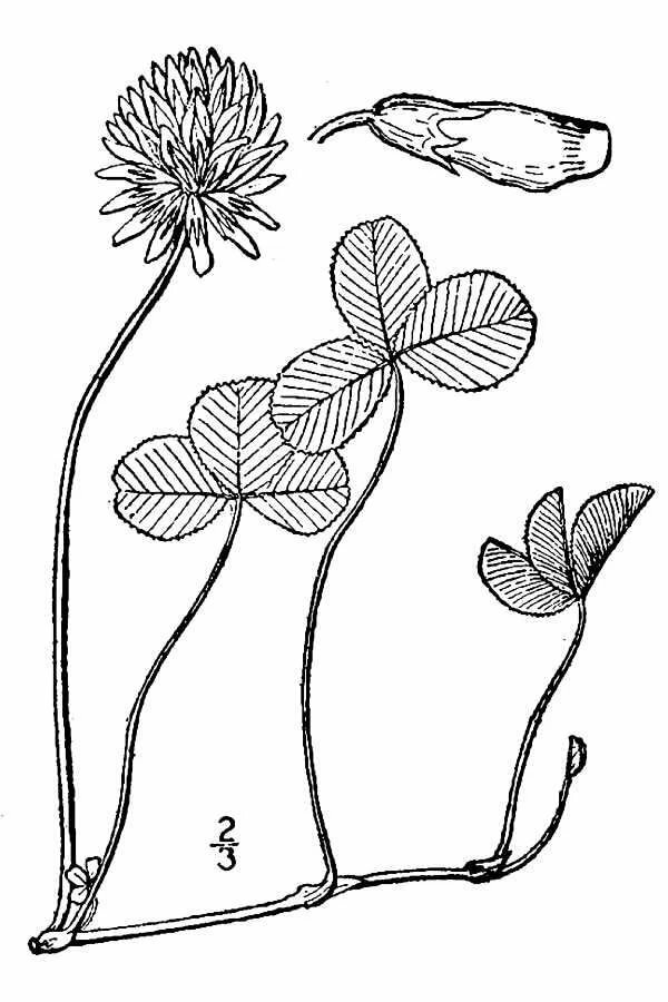 Это многолетняя трава с характерными для рода Клевер ( Trifolium ) семейства Бобовых сложными тройчатыми листьями, соцветиями – головками, коротким, но сильно ветвистым корнем. Цветки мотыльковые, с белыми лепестками.