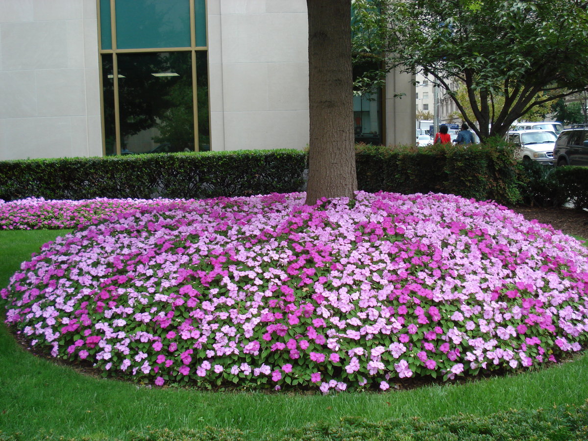 Если вы хотите украсить полутеневые участки сада, то стоит рассмотреть вариант совместного высаживания с хостами или виргинской традесканцией. А пеларгония или бальзамин будут оттенять цветки петунии, высаженной в вазоне.