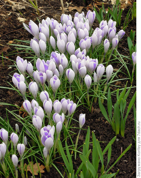 Листья у крокусов узкие изумрудно-зеленые с белой полосой посередине. Они появляются уже после начала цветения, и создают для полыхающих разными красками цветков удивительное нежное обрамление.