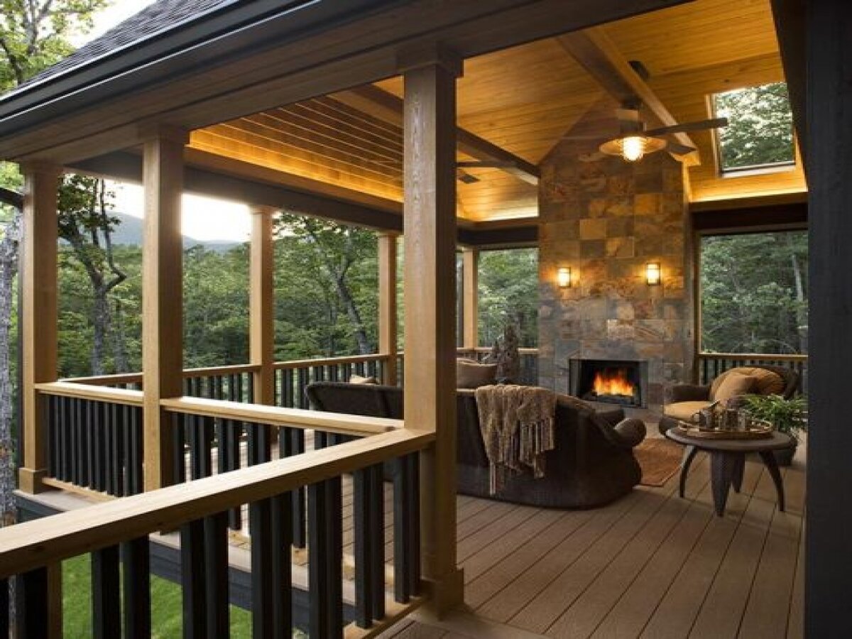 - Сочетание дерева и отделочного камня являются непременным атрибутом классики. Снова модерн на вашей веранде.