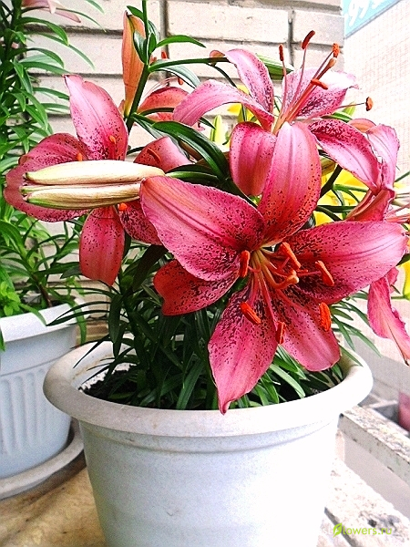 Одно из самых известных названий гибридных сортов. Цветы имеют яркую окраску: сиреневую, оранжевую, нежно-розовую. Окраска неоднородная. На цветах могут быть темные пятна, полосы, крапинки. Единственный недостаток – в том, что при недостатке освещения азиатский сорт не цветет в домашних условиях.