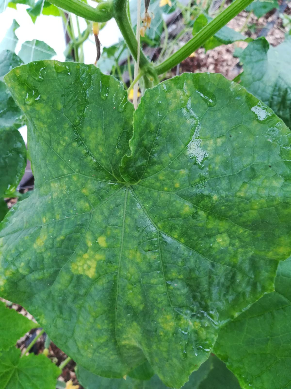 Эта “болезнь” прежде всего тепличных огурцов. В жаркие дни капельки конденсата попадают на листья, обжигают их. И через какое-то время мы видим на огурцах бледно-желтые пятнышки. В этом случае тоже особого повода для беспокойства нет.