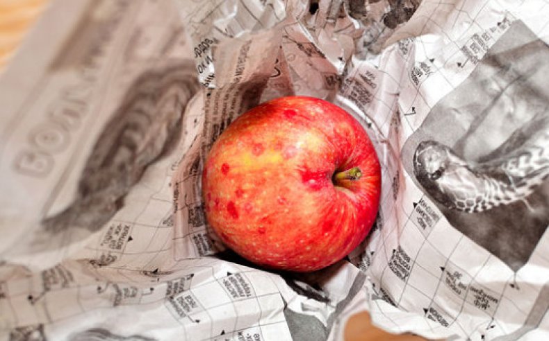 Чтобы продлить срок хранения яблок, перед закладкой оберните каждый плод в бумажную салфетку или простую бумагу. Не используйте с этой целью газеты, поскольку краска для печати содержит свинец и другие вещества, которые могут быть опасными для здоровья. Обернутые в бумагу фрукты аккуратно сложите в ящик или корзину плодоножками вверх.