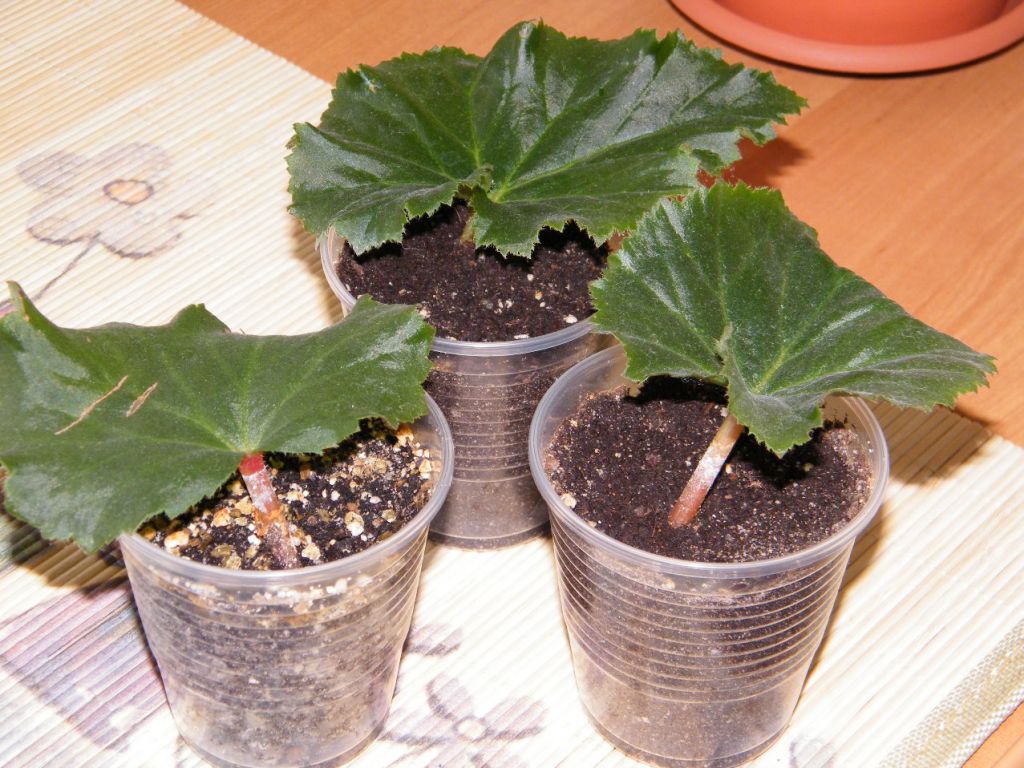 За посаженными фрагментами необходим уход, их необходимо регулярно проветривать, увлажнять грунт из пульверизатора. Примерно через 3 месяца молодые бегонии необходимо отделить от фрагмента и посадить в отдельные горшочки. Сажать необходимо аккуратно, сильно не утрамбовывая, так как молодые растения имеют очень нежные листочки и корни.
