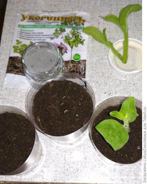 Для лучшего укоренения в первую очередь вам нужно сначала намочить, а затем припудрить (макнуть) нижнюю часть черенков в одном из стимуляторов роста корней (например, в Корневине).