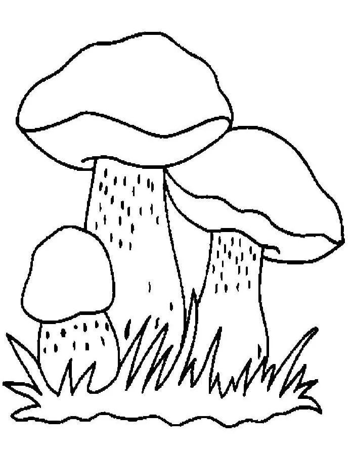 - Сделать контуры малого гриба четче. Убираем все вспомогательные черточки. Для красивого вида добавляем травку. Она может немного перекрывать основную часть.