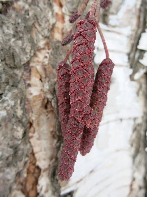 В сезон цветения ветки растения покрываются сережками – длинными махровыми толстыми соцветиями. На женских деревьях будущие семена имеют светло-желтый оттенок и длину 12 сантиметров, а на мужских растениях соцветия темно-красные или коричневые до 7 сантиметров длиной.