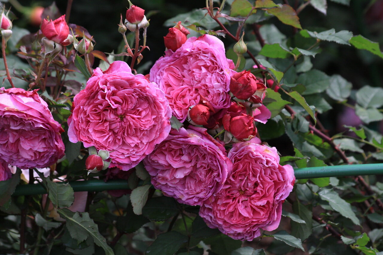 Если вы – любитель ярких, сочных цветов, вам приглянется сорт Red Eden Rose (Ред Эден Роуз) с махровыми цветами и ярко-гранатовым оттенком, который к концу лета выцветает и переходит в малиновый.