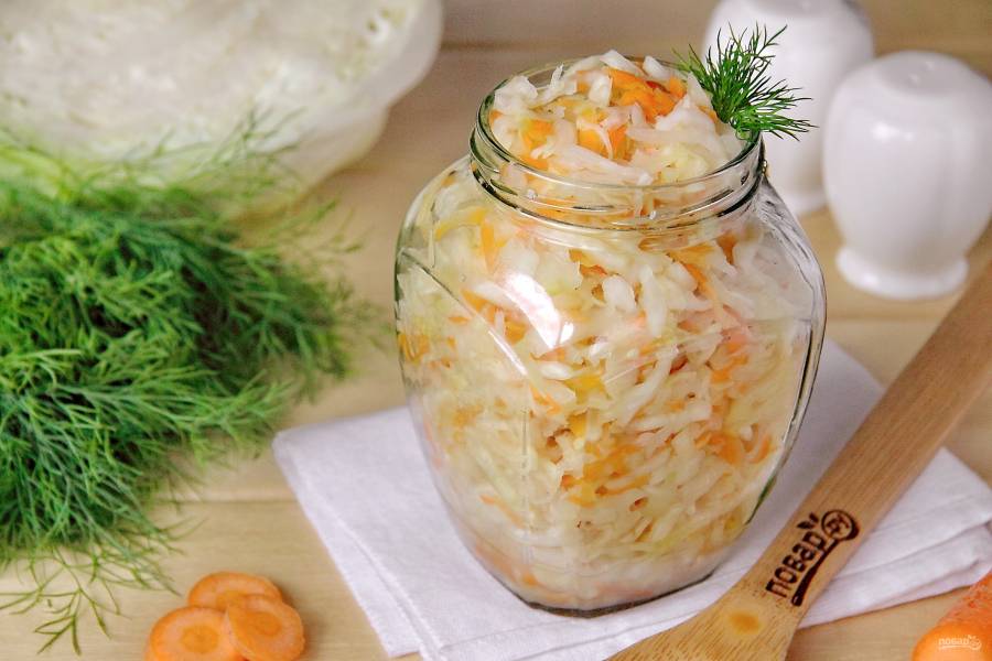 Капуста хорошо сочетается с морковью, причем морковь не только придает вкус заготовке, но и придает более красивый цвет. Приятный аромат зелени добавляют перец и лавровый лист. Такую заготовку можно смело подавать на праздничный стол, она красива и прекрасно подходит в качестве закуски перед горячими блюдами.