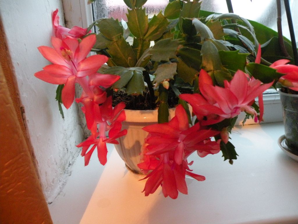 Шлюмбергера получила свое второе название благодаря обильному цветению в декабре. Как красиво на подоконнике смотрится цветущее растение, когда за окном снег и метели.