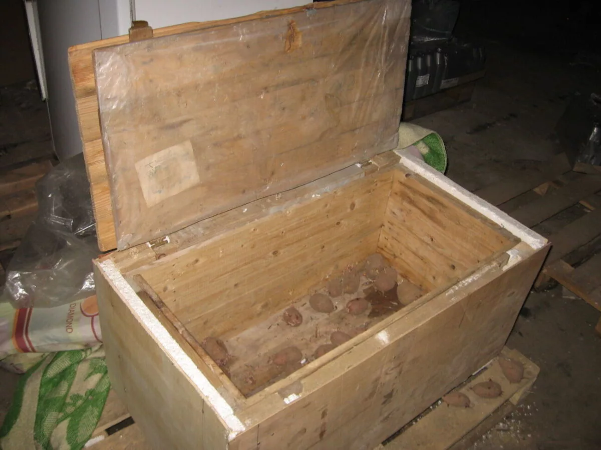 Выдержать все эти условия сложно, даже если балкон застеклен. Поэтому для хранения овоща используют специальные короба, внутри которых создается подходящий для картофеля микроклимат.