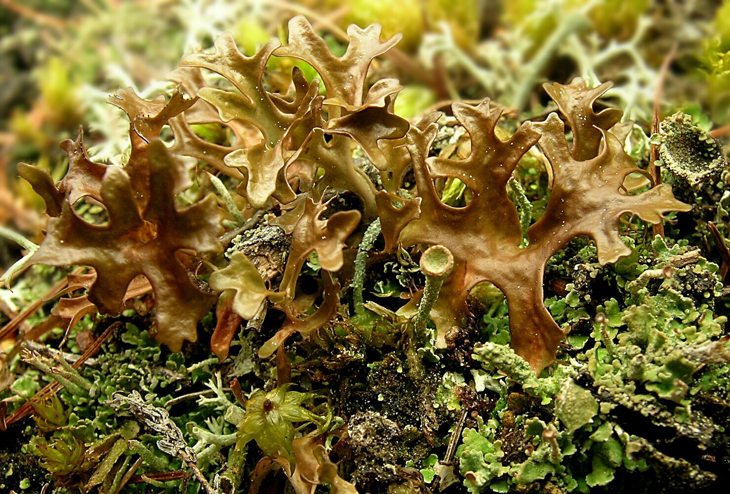 Речь идет о лишайнике – результате совместных «творений» сумчатых грибов, одноклеточных водорослей и микроорганизмов, обладающих свойством усваивать азот. Растет настилами, достигая высоты 5-10 см. Снаружи его «листики» сиренево-зеленовато-коричневые, с изнанки – светлее, с красным оттенком.