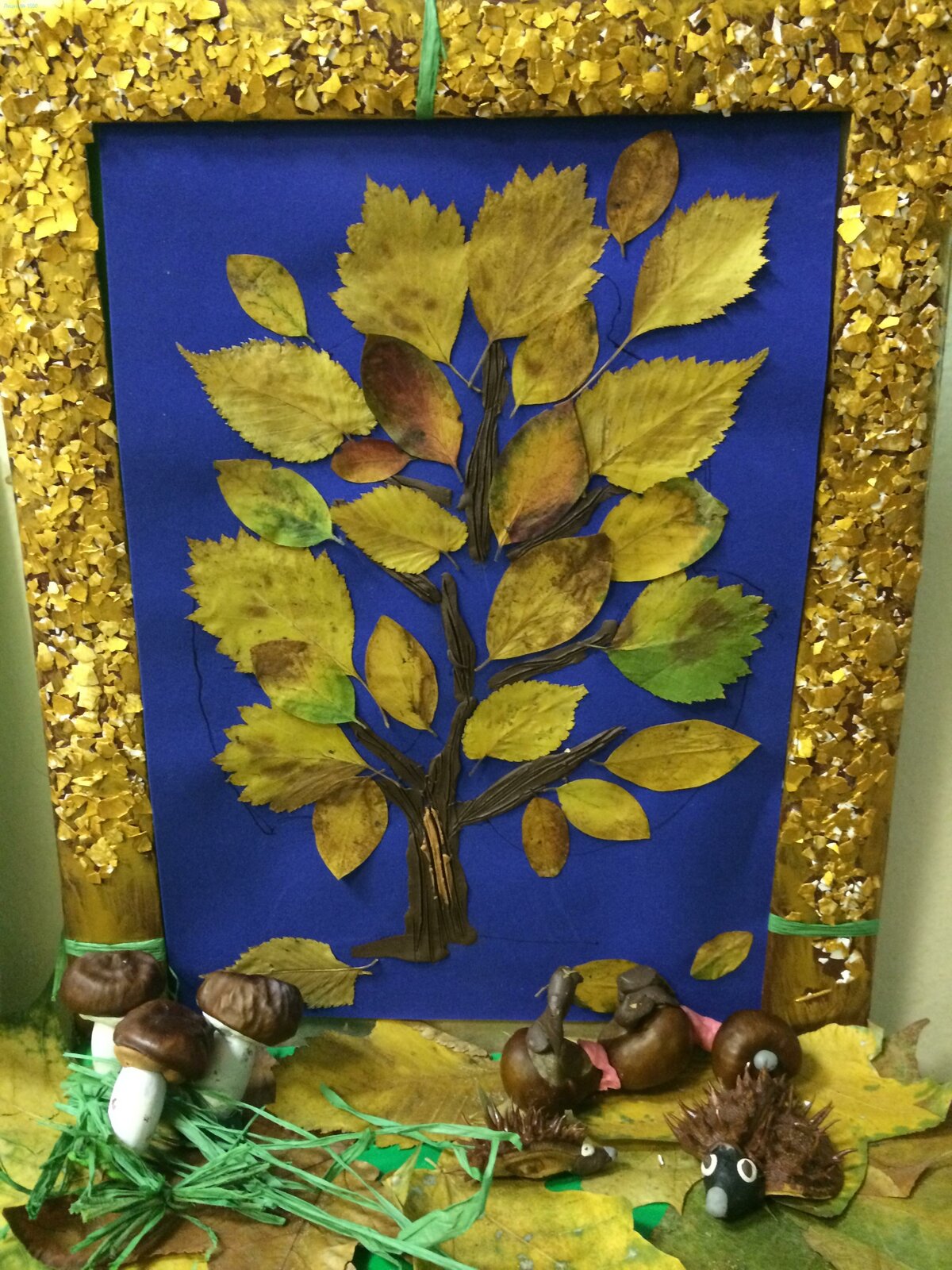- Вы также можете выйти на улицу и собрать настоящие осенние листья и наклеить их на как на картинке справа.