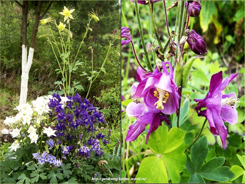 | Аквилегия | Небольшой кустик с высокими цветоносами, украшенные цветами самой различной расцветкой. | |