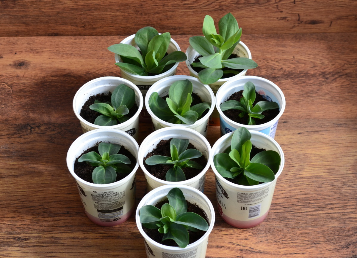 - в возрасте 4 настоящих листьев рассаду из общей посуды или таблеток пикируют в отдельные горшочки;